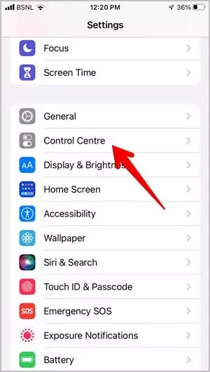 به قسمت تنظیمات گوشی خود بروید و گزینه control center را انتخاب نمایید.