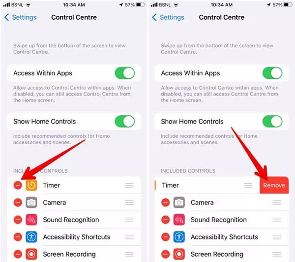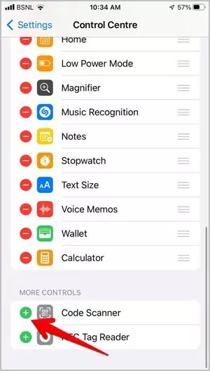در این قسمت می توانید با انتخاب گزینه remove یا “-“ برنامه هایی که به آن ها نیاز ندارید را از کنترل سنتر حذف نمایید.