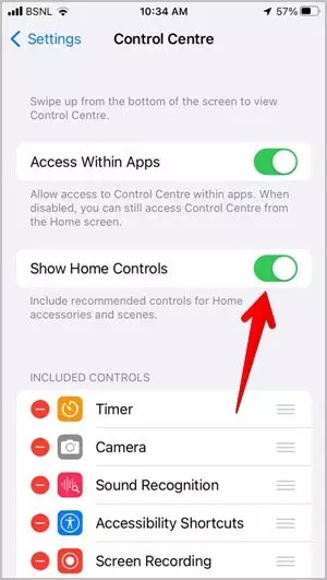 در قسمت control center گزینه Show Home Controls را غیر فعال نمایید. می توانید این دستورات را در عکس زیر مشاهده نمایید.