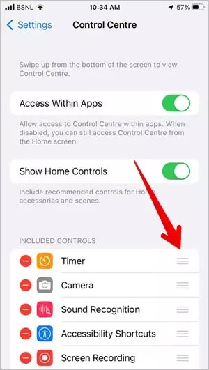 یکی دیگر از تنظیماتی که می توانید در قسمت کنترل سنتر انجام دهید، تغییر چینش آیتم ها و برنامه های افزوده شده به کنترل سنتر می باشد.