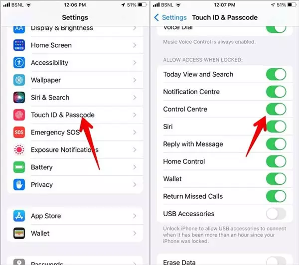 شما می توانید به صورت زیر دسترسی به کنترل سنتر را در زمان قفل بودن گوشی غیر فعال کنید.